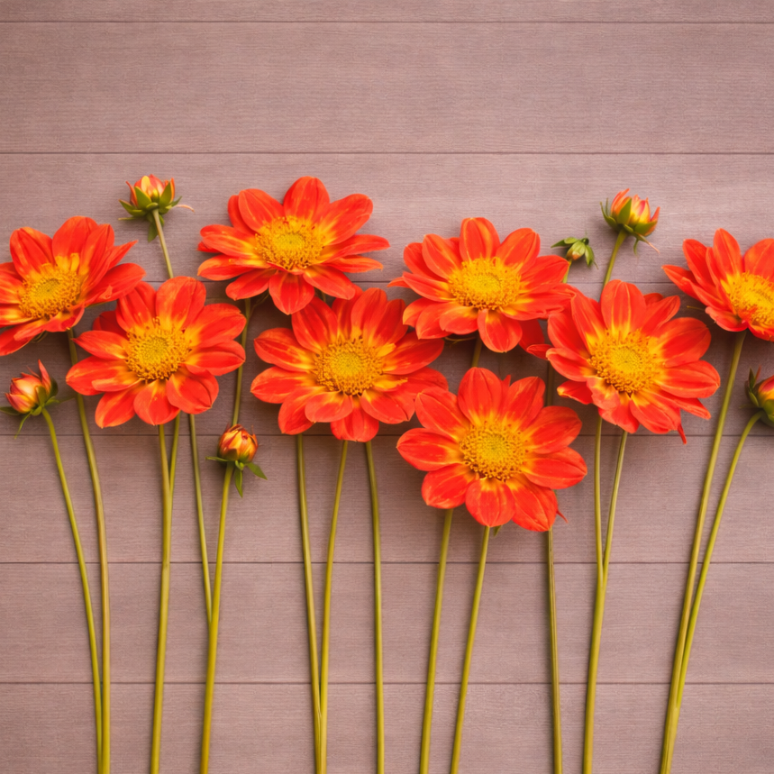 If you want instant happy in a bouquet, Pooh brings it. Bright orange/red petals kissed with sunny yellow and that sweet little yellow collar, she lights up the field and the market table. Plants are tall and generous with blooms, and pollinators can’t resist the open collarette center. A cheerful, hard-working variety I reach for all summer long.